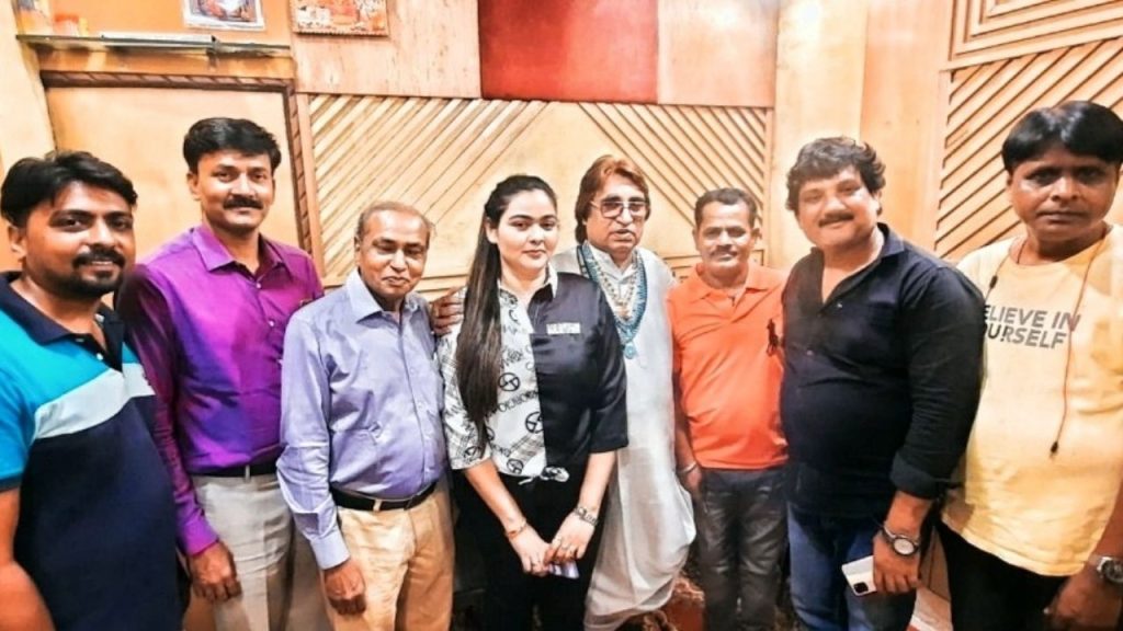 The last song ‘Phoolwa Si Mahek Jingia Tohar…’ of Bhojpuri film ‘Shola Shabnam-2’ was recorded in the voice of D C Madana (Teri Aakhya Ka Yo Kajal Fame) & Khushbu Jain at Dilip Sen’s Studio, Andheri (West), Mumbai. Its produced under the banner of Shivputra Films. The music of the film is by Dilip Sen.The film is directed by Shivji R Narayan. Lyricist S R Bharti & Yash Kumar, Recordist Rakesh Sharma, Singer D C Madana, Singer Khushbu Jain, Composer Dilip Sen, Actress Muskan, Director Shivji R Narayan, Assistant Commissioner of Labour, Mumbai (Maharashtra) Shri Santosh Kokat & Editor Rohit Gupta etc. were present.